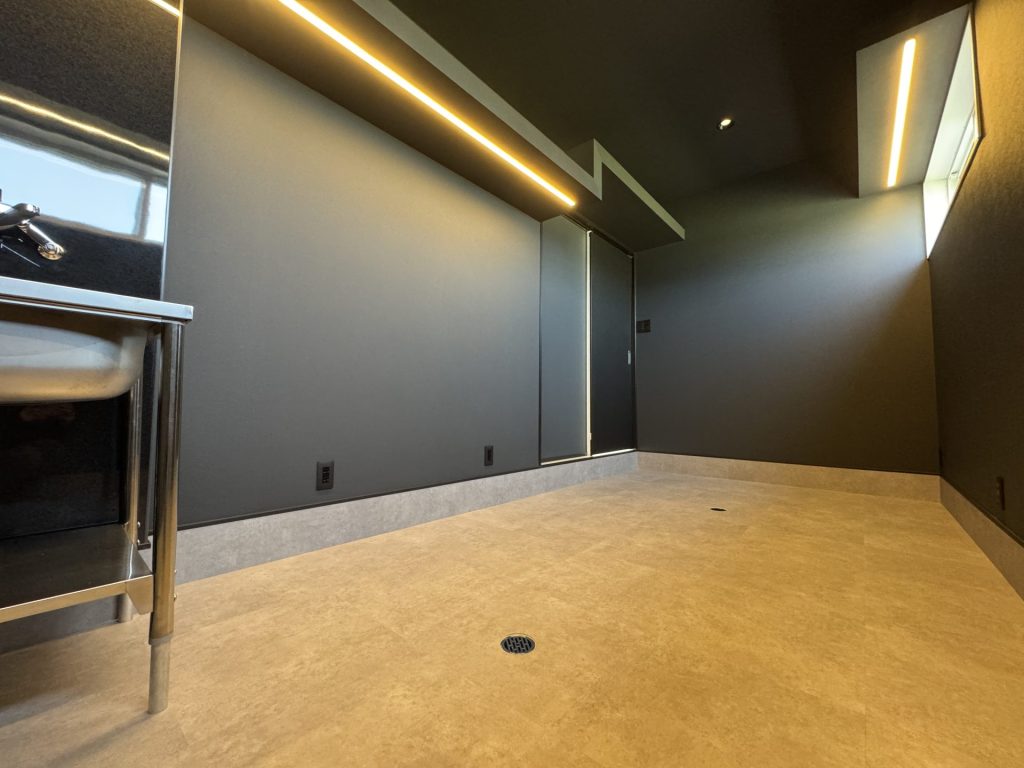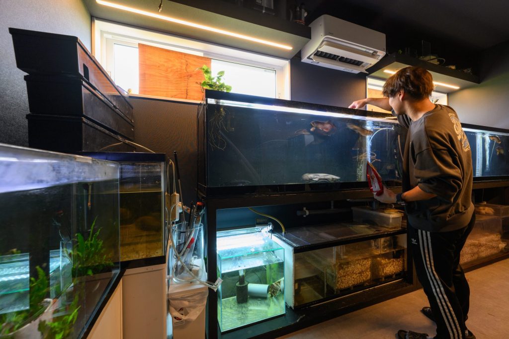 ご主人の趣味である熱帯魚を適切な環境下で育て、鑑賞できるアクアリウム専用ルーム。